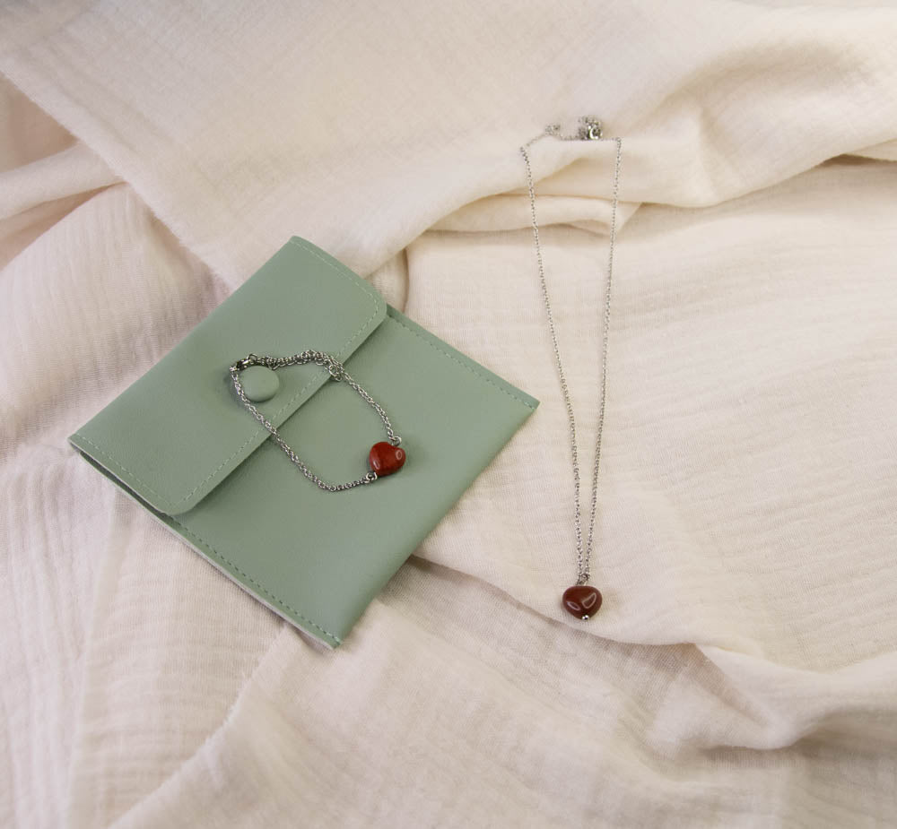 Les pierres utilisées sont naturelles, les couleurs et formes peuvent donc présenter de légères différences d'un bijou à un autre.