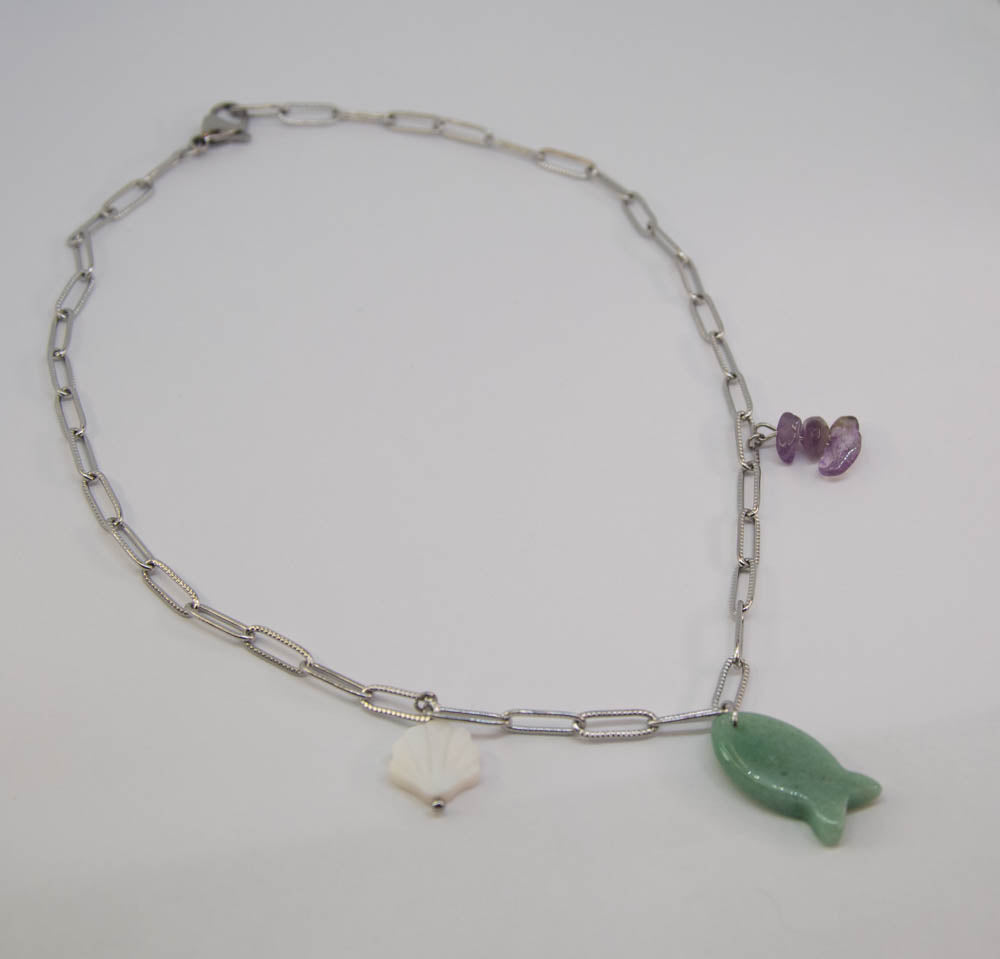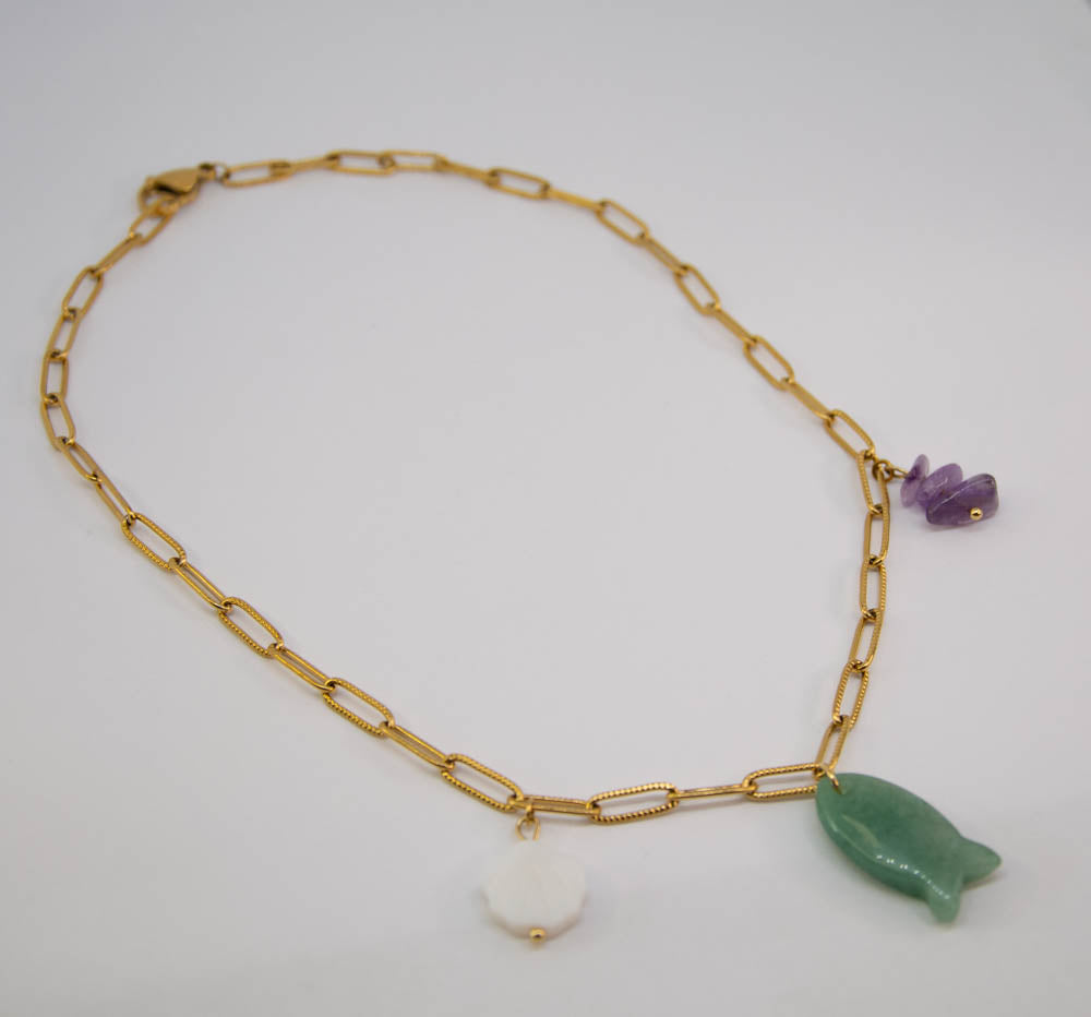 - Breloques en coquillage naturel, en aventurine naturelle et en améthyste naturelle